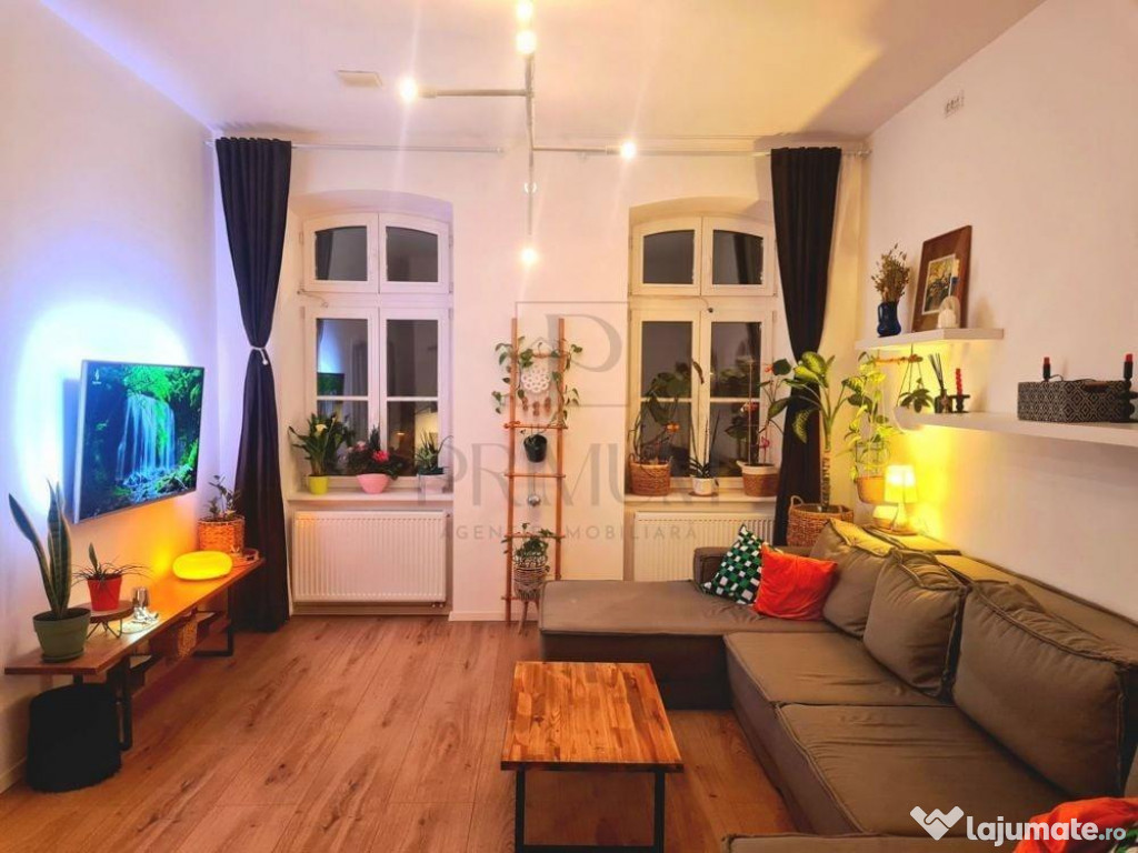 Agentia Imobiliara PRIMUM - Timisoara are placerea de a va prezenta spre vanzare apartament cu 3 camere, semidecomandat, complet RENOVAT, MOBILAT SI UTILAT, situat in Timisoara, Zona PIATA BADEA CARTAN, zona linistita, usor accesibila, aproape de principalele puncte de interes: multiple mijloace de transport in comun; acces rapid catre supermarketuri, magazine, farmacii; in proximitatea scolilor, gradinitelor si parcurilor.Aceasta se afla la etajul 1, intr-un imobil TIP VILA intr-un ansamblu istoric cu 1 etaj cu pod si acoperis.