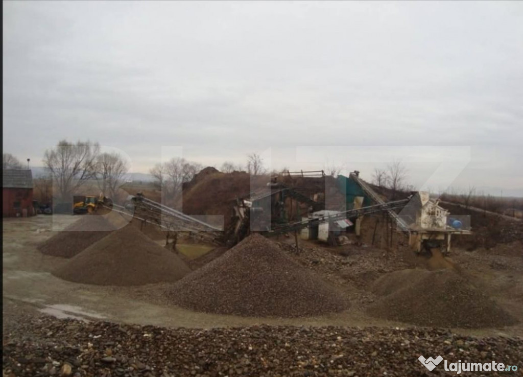 BLITZ oferă spre vânzare o balastieră complet funcțională, situată strategic în zona Mocod, jud. Bistrița-Năsăud, într-o regiune cu acces facil către drumuri principale și piețe regionale de construcții și infrastructură.Proprietatea se desfășoară pe o suprafață generoasă de 6 hectare, aflată integral în exploatare, și este dotată cu o gamă completă de utilaje profesionale pentru extracție, transport, prelucrare agregate și lucrări conexe.