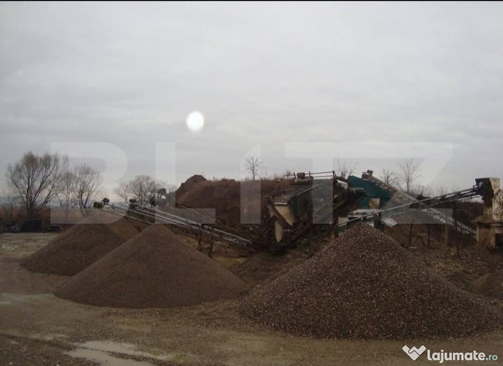 BLITZ oferă spre vânzare o balastieră complet funcțională, situată strategic în zona Mocod, jud. Bistrița-Năsăud, într-o regiune cu acces facil către drumuri principale și piețe regionale de construcții și infrastructură.Proprietatea se desfășoară pe o suprafață generoasă de 6 hectare, aflată integral în exploatare, și este dotată cu o gamă completă de utilaje profesionale pentru extracție, transport, prelucrare agregate și lucrări conexe.