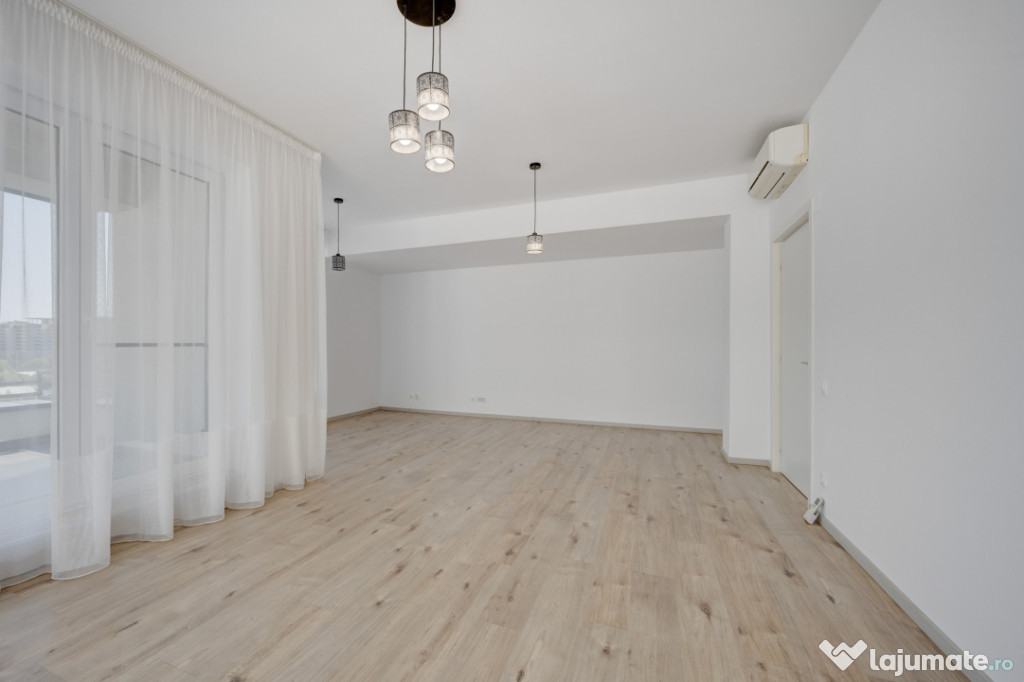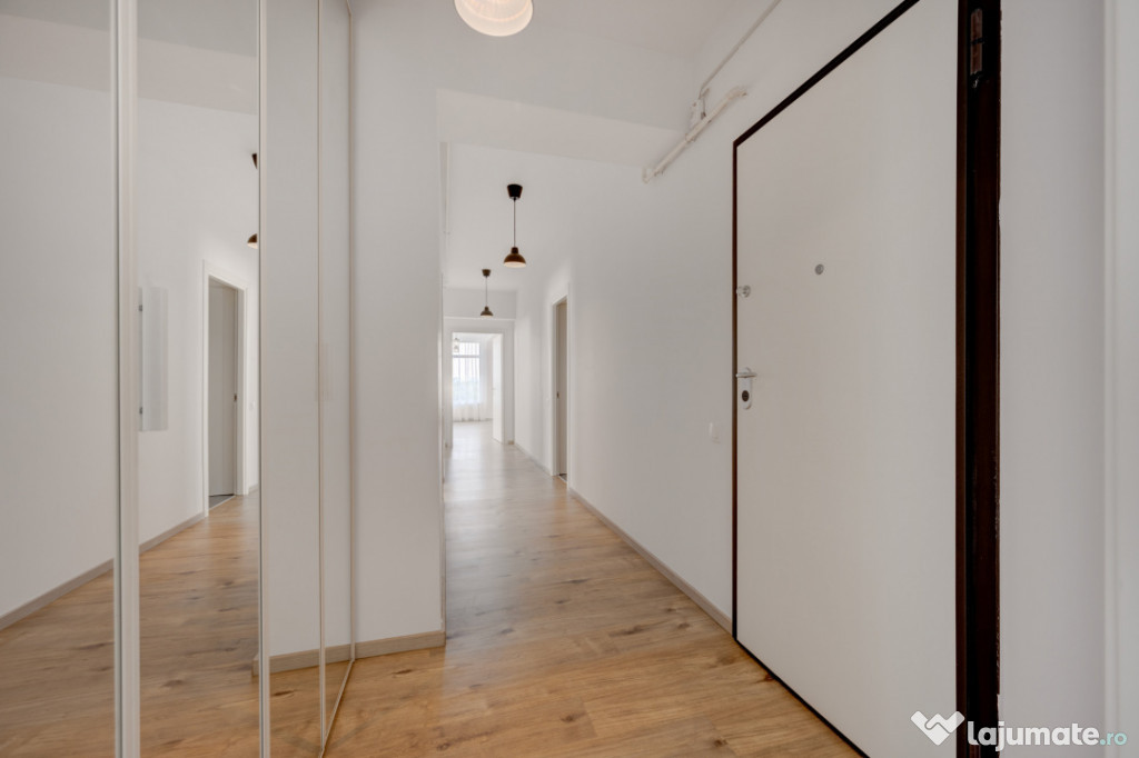 Apartamentul beneficiaza de 1 loc de parcare subteran. Se inchiriaza nemobilat, asa cum se vede in fotografii. Bucataria este mobilata si holul de la intrare este amenajat cu dressing pentru haine, in schimb, dormitoarele si livingul sunt nemobilate.