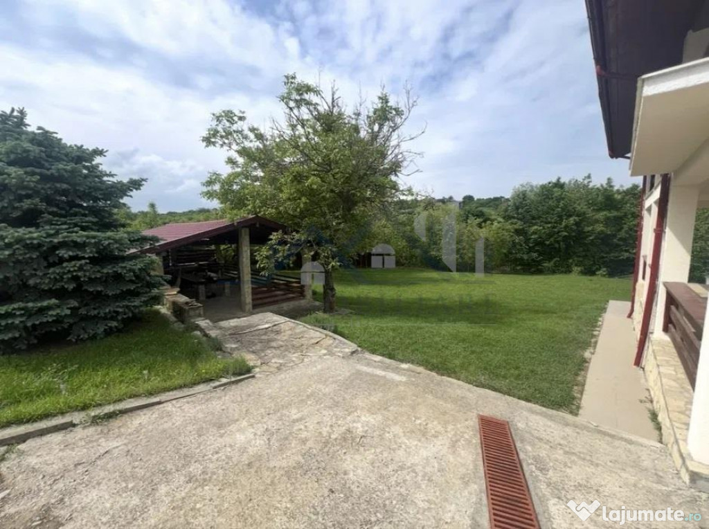 Terenul aferent proprietatii este in suprafata de 1670mp cu deschiderea la strada de 30ml, gard imprejmuitor ( stalpi din beton armat si lamele metalice) poarta pentru masini automatizata, poarta pietonala, zona de parcare, pavele, garaj dublu cu usi automate, trotuare si cai de acces betonate, pomi si arbusti ornamentali, gazon, spatele gradinii zona verde. Foisor rustic in suprafata de 52mp. din piatra si lemn