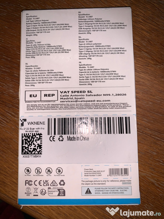 Anuntul Baterie externă TJ-2407 este adaugat de pe LaJumate.ro.