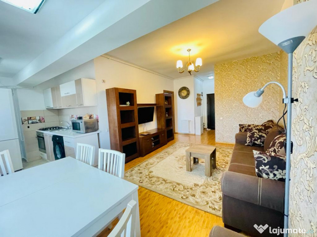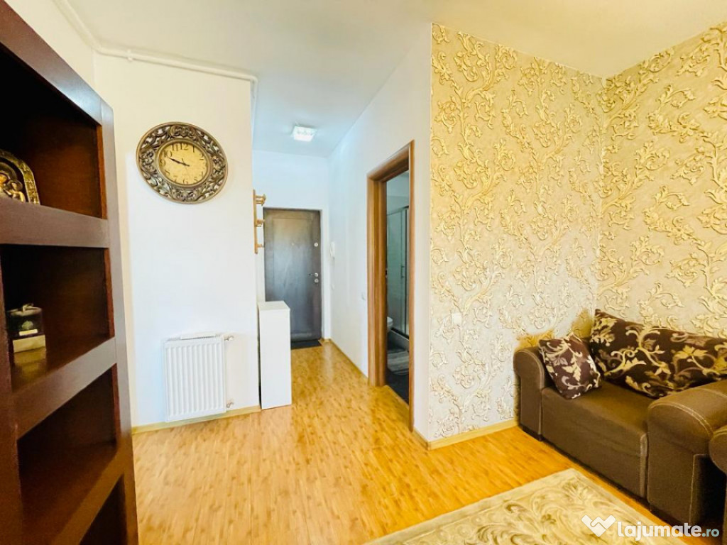 Bucurestii Noi – str. Fortunei, apartament 2 camere elegant, mobilat si utilat, 50 mp.Amplasat convenabil pe o strada linistita, la 10 minute de mers pe jos de piata si parc si 15 minute de metrou. Apartament spatios si confortabil, situat la etajul 3 in bloc fara lift, potrivit pentru un cuplu sau o familie tanara. Imobil din 2012, curat si bine intretinut, cu access securizat. Interior luminos, curat, amenajat clasic, echipat cu centrala proprie si aer conditionat. Are un balcon care beneficiaza de o priveliste frumoasa peste cartier. Disponibil pentru vizionare imediat.