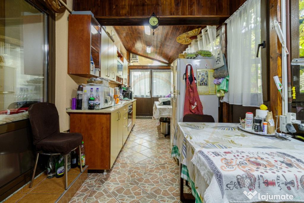 Curte amenajată, complet împrejmuită, cu zonă verde, terase, piscină și foișor – perfectă pentru relaxare sau seri cu prietenii.