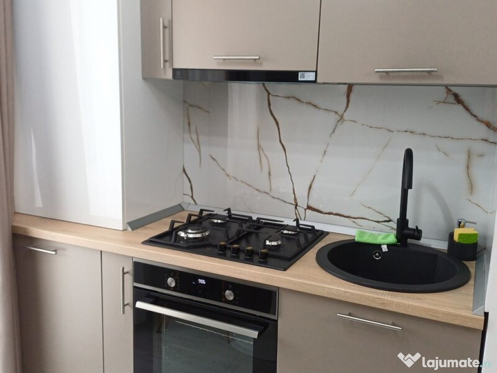 Este utilat complet si mobilierul este personalizat, la comanda. Fiind prima inchiriere totul este nou