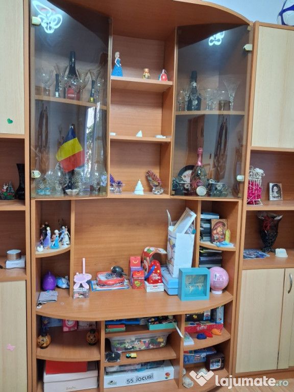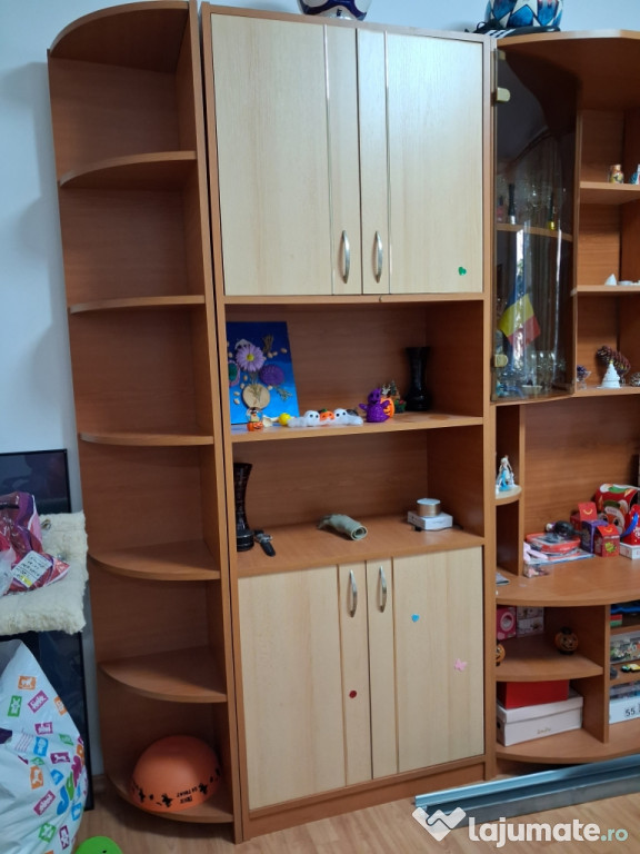 Ajut la coborat, etj 2 si incarcat in duba. NU ofer transport.Mobilier de bibliotecă din lemn, compus din mai multe rafturi și dulapuri, în stare foarte bună de utilizare. Poate fi folosit pentru depozitarea și organizarea cărților, jucăriilor sau altor obiecte decorative. Mobilierul este în culori deschise și are un aspect practic și funcțional. Militari, sector 6