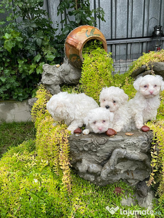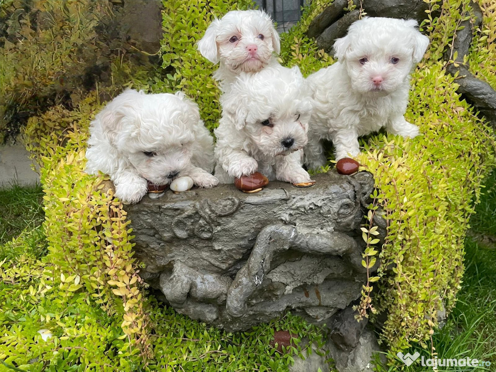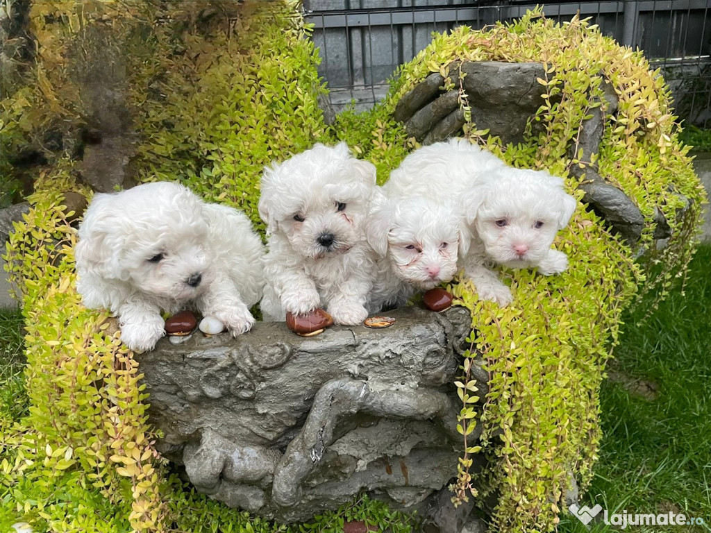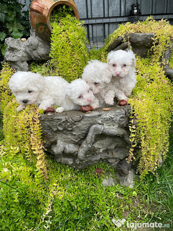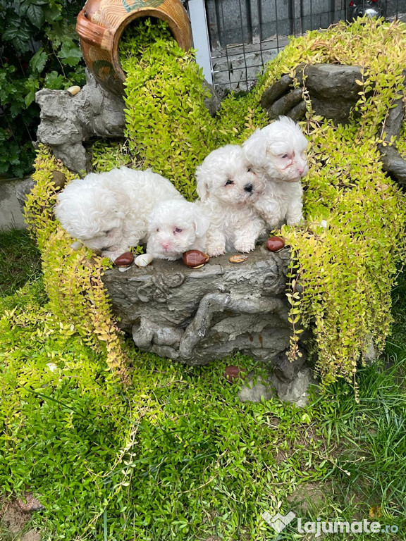 Pui Bichon Maltese rasa pura (2 fetite si 2 baietei disponibili).De vanzare 4 puiuti Bichon Maltese, rasa pura, nascuti pe 24 august 2025. Varsta aproximativa: 1 luna si jumatate.