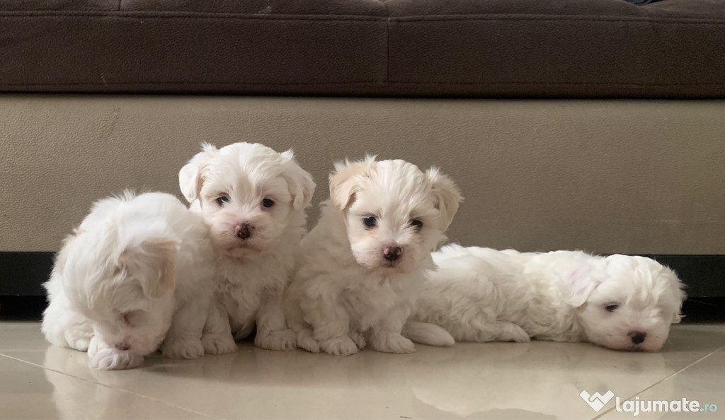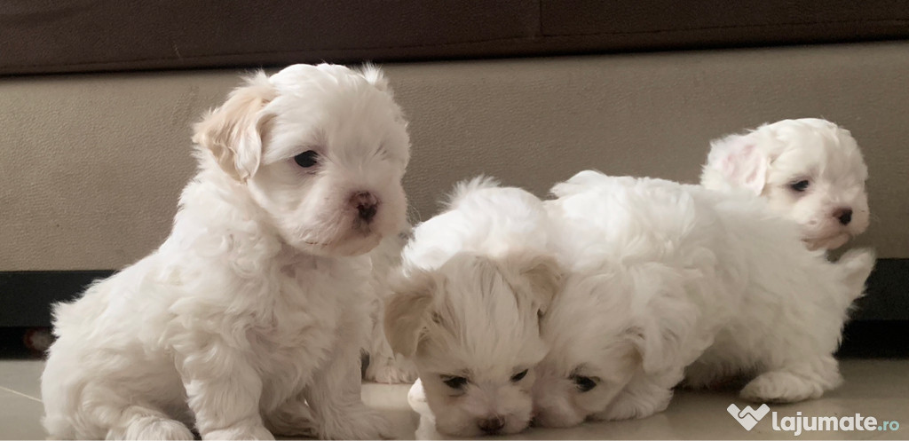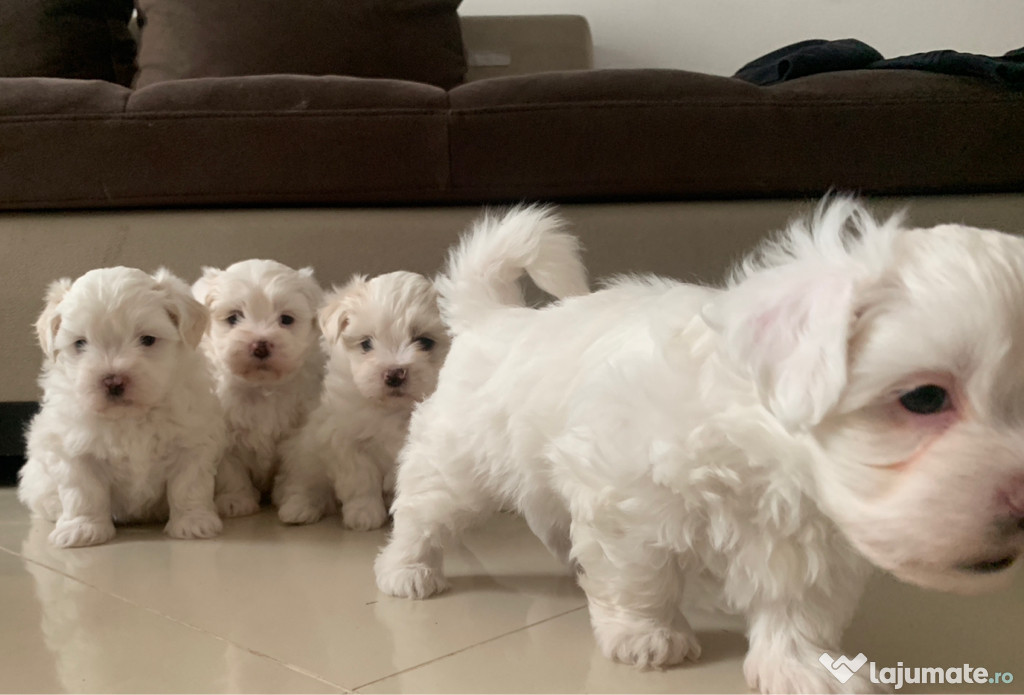 Pui Bichon Maltez, rasă pură, perfecți pentru familii iubitoare! Sunt mici ghemotoace de blăniță albă ...