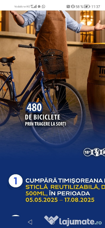 Vând bicicleta cu inscripția Timișoreana, este noua, nu este asamblata, mai multe detalii la telefon sau emailAnuntul Bicicleta concurs este adaugat de pe LaJumate.ro.