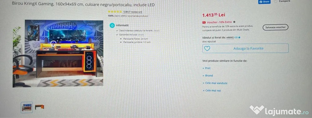 Birou de gaming kingx, cu dimensiuni de 160x94x69 cm. Acesta este un birou modern și funcțional, potrivit pentru jocuri și activități de birou. Dispune de spațiu de depozitare și are o construcție solidă și durabilă. Acesta nu mai are banda led.Anuntul Birou Gaming KingX, 160x94x69 cm este adaugat de pe LaJumate.ro.