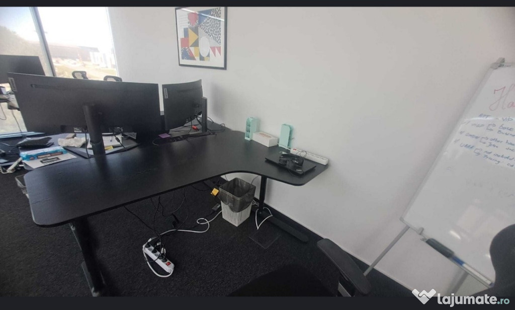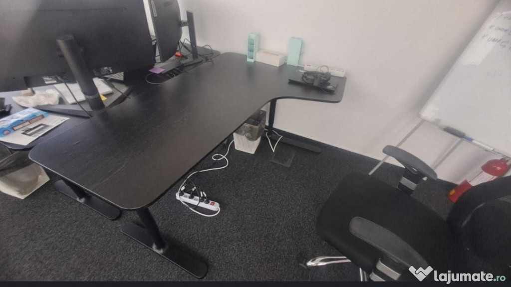 Birou de colț Ikea, în stare bună de utilizare. Mobilierul este robust și ergonomic, oferind un spațiu de lucru eficient într-un colț al încăperii. Poate fi o soluție practică pentru un birou de acasă sau un spațiu de lucru mic.Birourile au fost cumparate de la ikea in jur de un an si au costat 1100 lei bucata, sunt reglabile pe inaltime si dispun de plasa de prindere a cablurilor. Toate birourile sunt montate, iar cumparatorul trebuie sa-l desfaca si sa-l transporte daca se hotaraste sa-l cumpere.