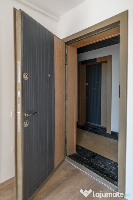 -ușă metalică antiefracție imbracata in lemn, interior+exterior;