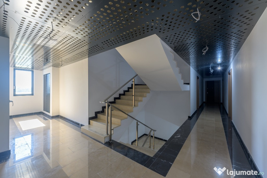 -casa scării echipată complet: marmură, tavane lamelare, sistem de iluminat pe senzori;