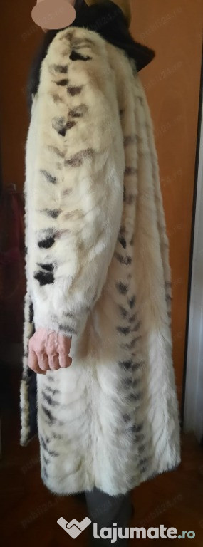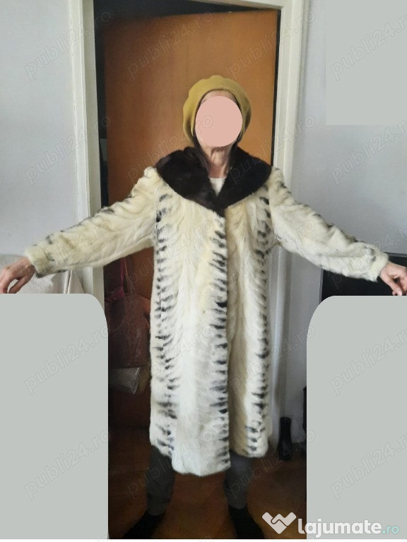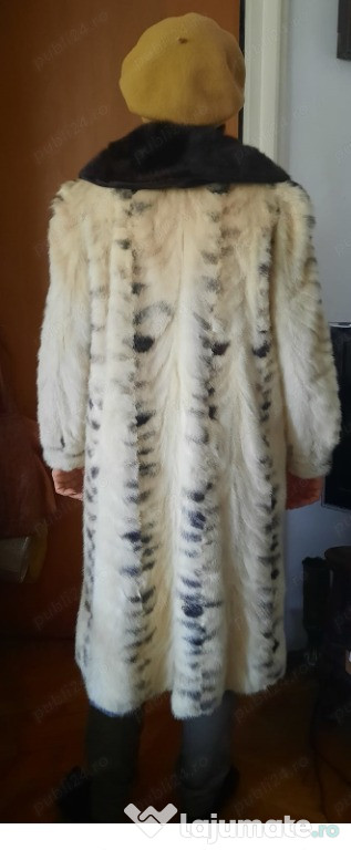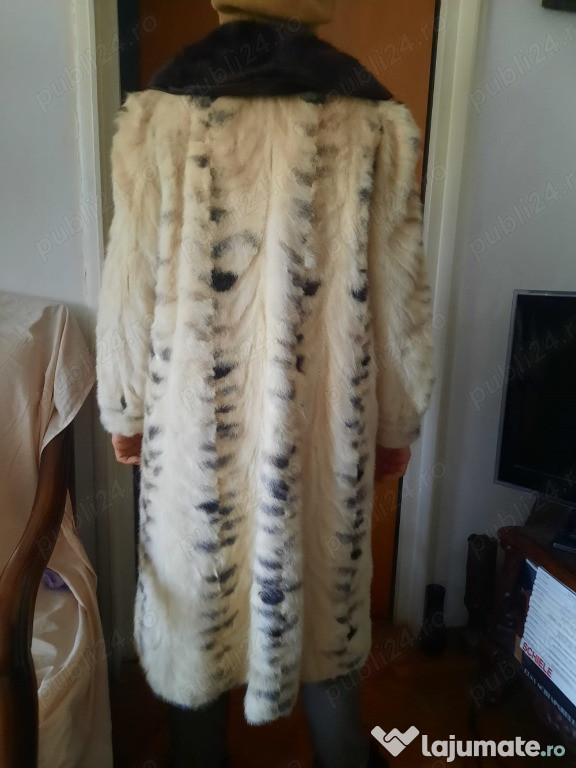 Blana de nurca vizon natural, culoare crem spicat cu maro foarte frumoasa, stare perfecta (noua), din Franta.Lungime 102 cm, bust 120 cm, lungime maneca 62 cm, marimea M.