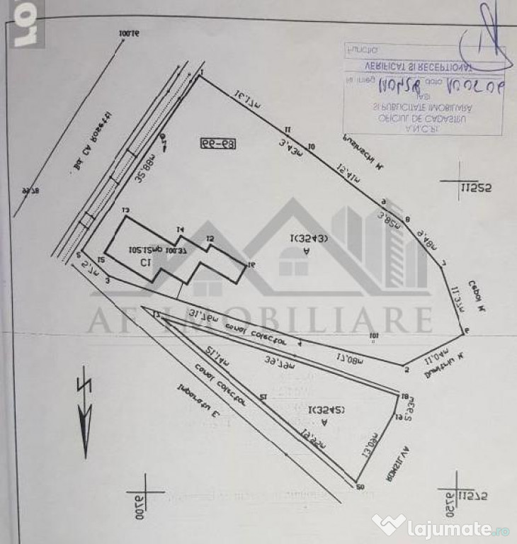 imprejmuit, porti auto si pietonal, pe mijlocul terenului mai avem o fundatie si 3 camere pe parter, cu autorizatie de constructie, cea ce trebuia sa fie service auto.
