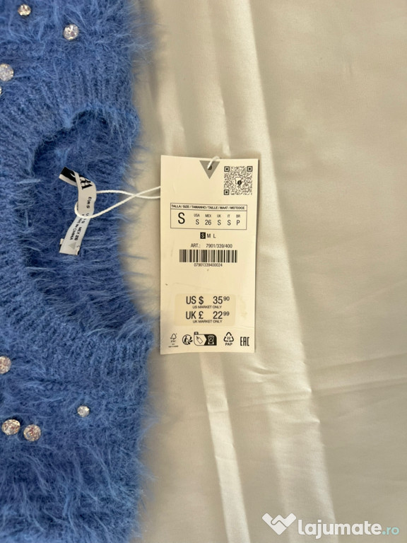 Bluză tricotată, nouă cu eticheta, culoare bleu , foarte frumoasă, mărimea S,de la Zara, cu mâneci sc ...