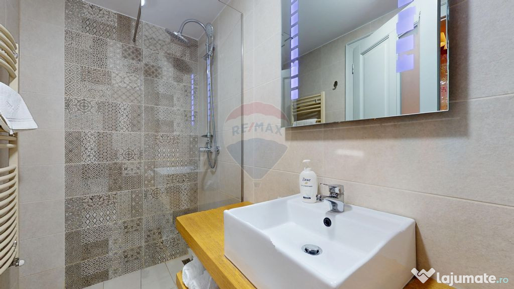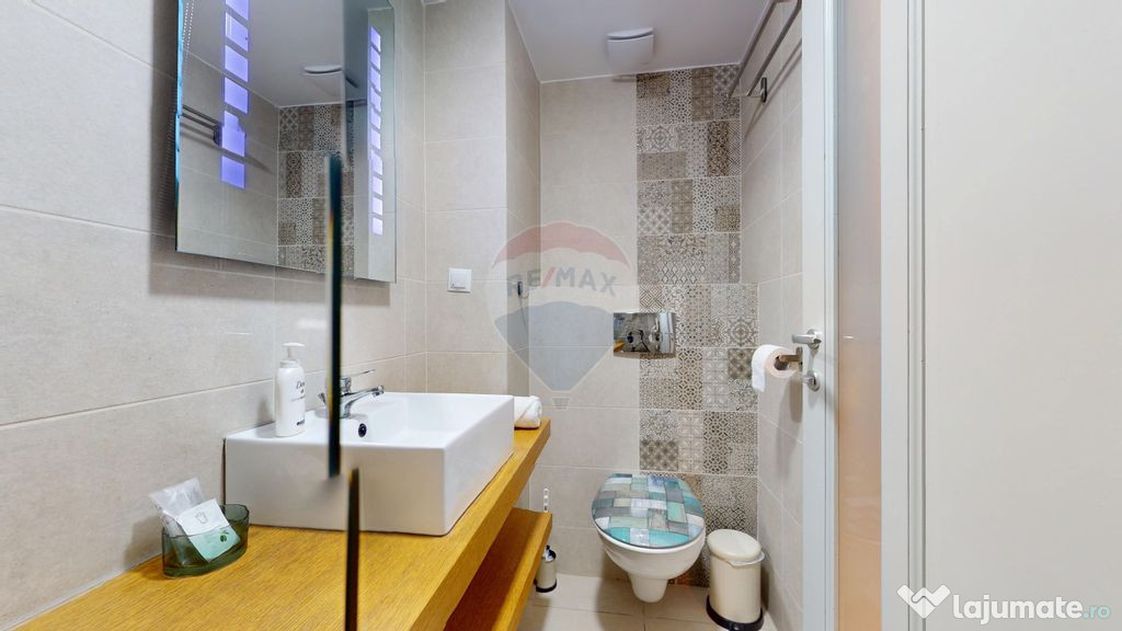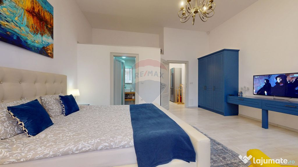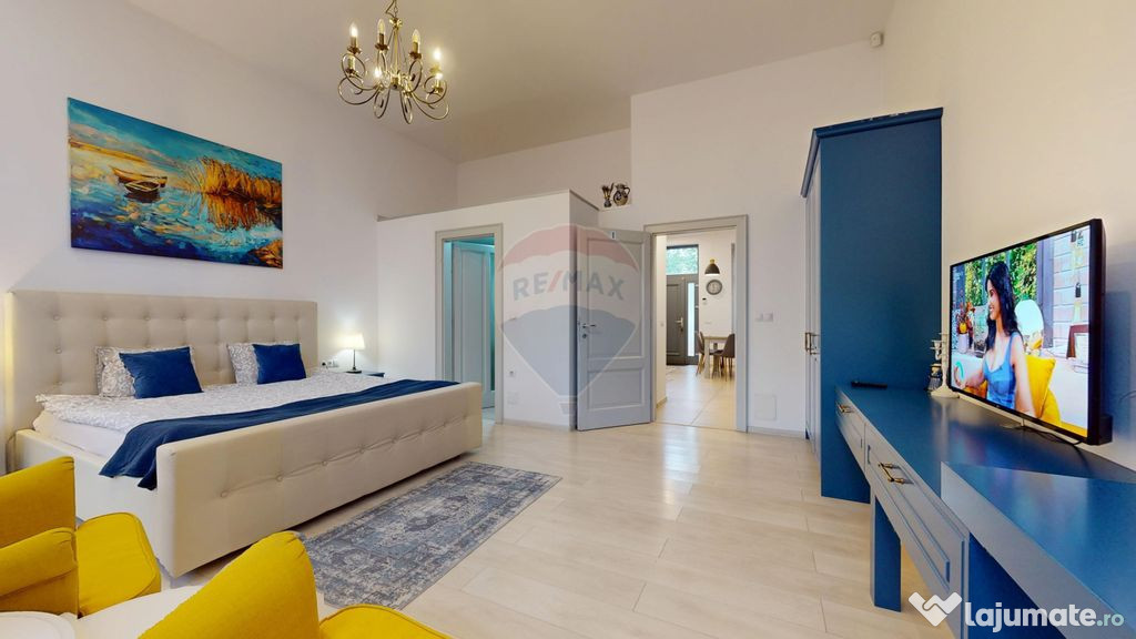 Design și echipare de lux: Interiorul este complet mobilat și utilat cu bun gust, oferind tot necesarul: două televizoare, mașină de spălat rufe, mașină de spălat vase, aragaz, aspirator, hotă și finisaje de înaltă calitate.