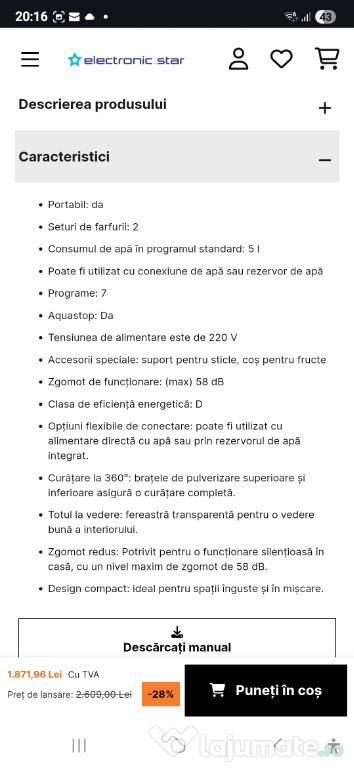 Vand mini masina de spalat vase, folosita, fara defectiuni, ultimul pret!Anuntul Amazonia, mini masina de spalat vase este adaugat de pe LaJumate.ro.