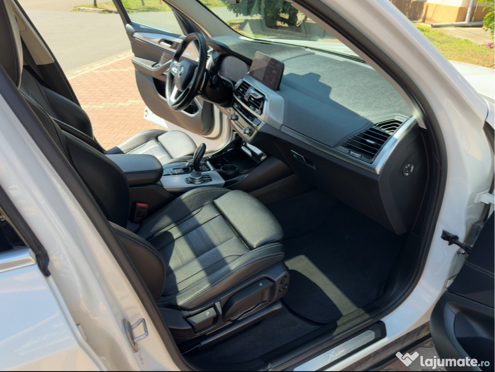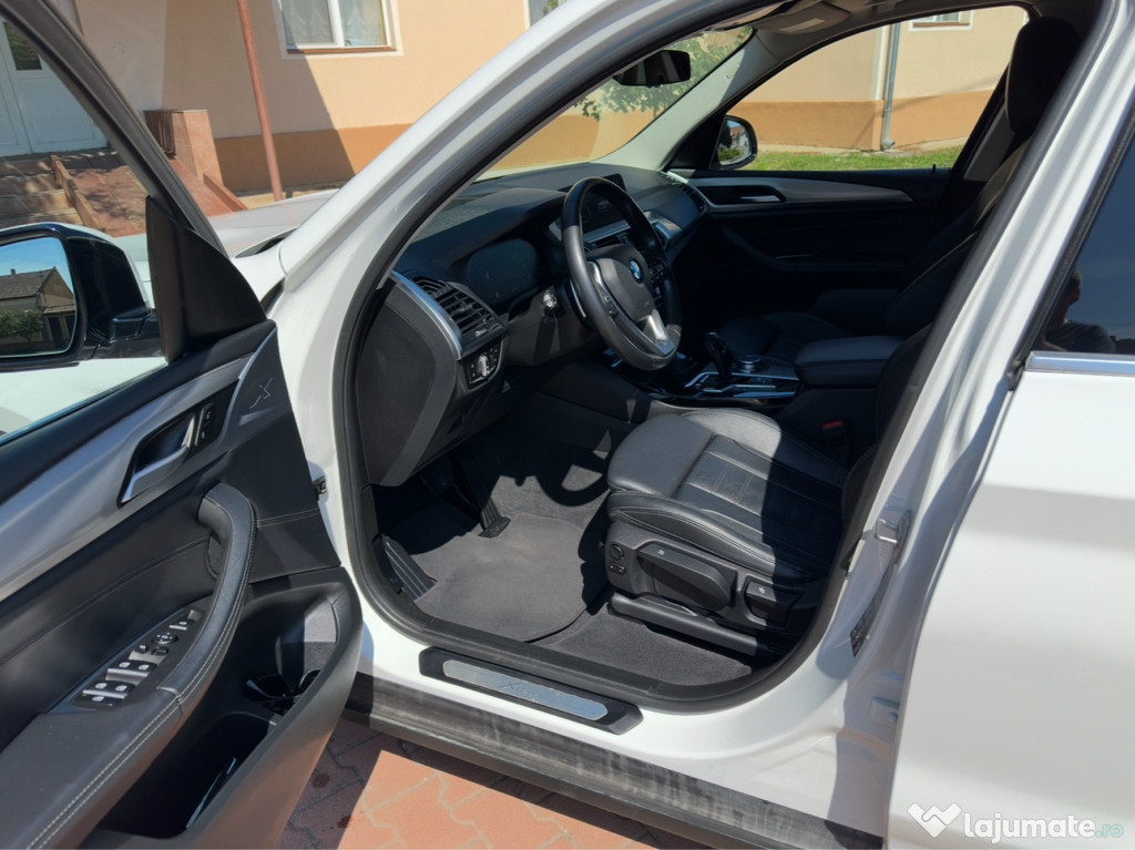 Vand BMW X3 G01 Xdrive 20d X-Line , fabricatie 2020.06, motor 2.0 litri de 190 cai putere,cutie automata 8+1 trepte, 3 moduri de condus Eco-Comfort-Sport, 4*4 permanent, primul proprietar in Romania, inmatriculata in 03.2ascuns km absolut reali . Revizie generala in 04.2024 cand s-au schimbat: ulei cutie de viteze, placute+discuri fata originale BMW, ulei motor+filtre, ulei diferential fata+spate, curatare galerie de admisie(detin facturi). In 03.2025 s-a schimbat ulei motor+filtre, cea mai recenta revizie 12.2025- ulei+ filtre, placute+ discuri frana spate, acumulator, antigel. Practic de la achizitie masina are schimbate toate consumabilele. Cauciucuri de vara Pirelli folosite 2 sezoane , DOT 2023, cauciucuri de iarna Pirelli folosite 1 sezon, DOT 2024. Masina ingrijita , intretinuta,curatata regulat si tinuta in garaj, functioneaza perfect si arata foarte bine. Nu necesita investitii, acte la zi.Dotari: Faruri Full Led adaptative, Trapa Panoramica, Bord Full Digital, HeadUp Display, Lumini ambientale interior+ exterior, Stopuri Full Led, Fază lungă automată,Portbagaj electric, Apple Carplay / Android Auto, Camera marsalier,Pilot automat, Gesture Control,Brake Assist (franeaza singura),Park Assist, Side assist( avertizare unghi mort), Lane assist( avertizare la depasirea benzii de circulatie cu vibratie in volan),Închidere centralizată cu telecomandă,ABS (sistem antiblocare), Bare suport pe plafon pentru portbagaj suplimentar, Computer de bord, Controlul presiunii în pneuri RDC, Faruri de ceaţă LED, Filtru de particule, Geamuri acţionate electric faţă şi spate, geamuri spate ionizate cu perdeluta,Oglindă exterioară adaptivă antiorbire,Oglindă exterioară reglabil electric, Oglindă exterioară cu rabatare electrica, Oglindă interioară cu atenuare automată,Radio, CD, MP3, AUX, USB, Bluetooth, Senzor de ploaie, Senzor lumini automate, Senzori de parcare: PDC (sistem de asistenţă la parcare) ( faţă, spate ), Servotronic, Sistem automat climatizare pe doua zone si spate, Sistem control şasiu: DTC, Sistem de comandă vocală, Sistem de navigaţie 4K cu reprezentarea hărţii: Business, Sistem Start/Stop, Bluetooth, WiFi, Volan multifuncţional cu comenzi si padele, Volan piele, Scaune sport cu suport pentru genunchi din Piele, Încărcare telefon wireless,Pachet conectivitate( masina se poate controla din telefon prin aplicatia MyBMW)… etc.