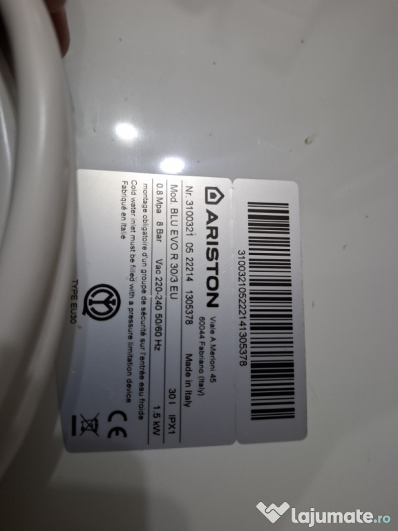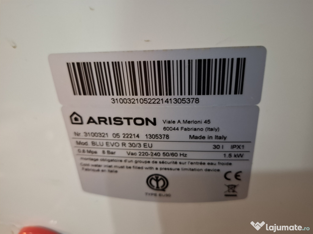 Boiler electric Ariston de 30 litri achiziționat în 2022.Are chitanța, factura și manualul de utilizare.