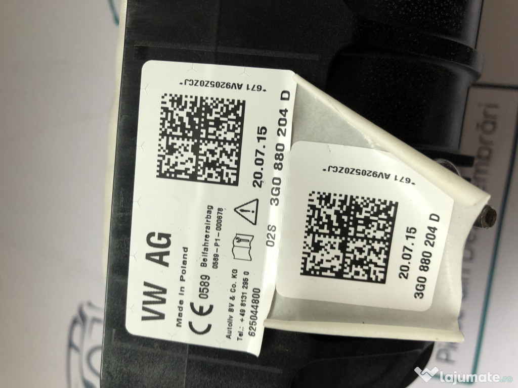 Airbag pasager Volkswagen Passat B8 2015. Cod(uri): 3G0880204D. Piesele comercializate sunt originale, provenite din dezmembrari. Dispunem de o gama larga de piese multimarca. Piesele sunt verificate inainte de a fi puse spre vanzare. In caz de neconformitate piesa se poate returna. Va rugam sa verificati disponibilitatea pieselor telefonic. Trimitem in tara prin curier.Marcă: Volkswagen