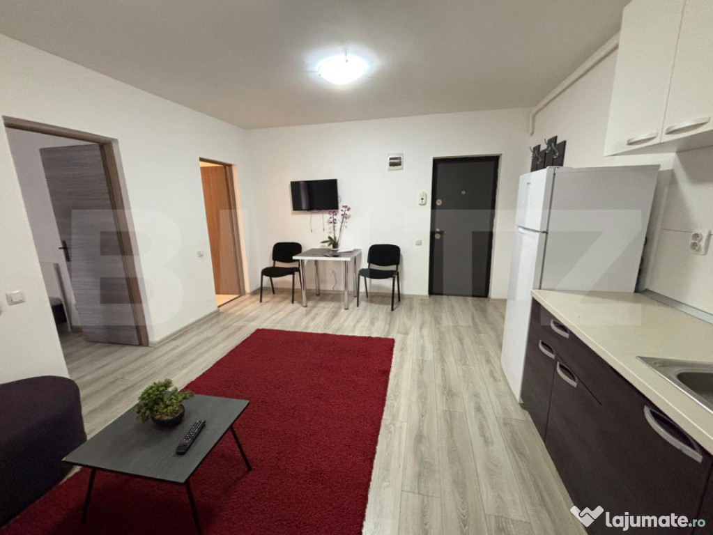 Blitz inchiriaza apartament cu 2 camere, situat in Floresti, in zona Catanelor. In proximitatea zonei exista acces pentru supermarket, magazine, fast food-uri, mijloace de transport in comun, etc. Apartamentul este pozitionat la parter al unui imobil alcatuit din 4 etaje si are o suprafata utila de 40 mp, cu o compartimentare modern gandita, respectiv decomandata, compusa din: bucatarie cu living, dormitor si baie .Cod ofertă / ID BLITZ: P154701