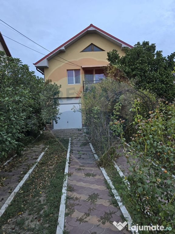 Va oferim spre vanzare , in exclusivitate, cu 0% comision pentru cumparator , o casa in suprafata de 270 mp , construita din caramida si acoperita cu tabla, S+P+M, alcatuita din 3 dormitoare, 1 bucatarie, 2 bai, 1 dressing. 2 balcoane, 2 terase, beci, pod si garaj si un teren generos de 1056 mp intravilan, pe care sunt plantate flori si numerosi pomi fructiferi.Proprietatea este conectata la toate utilitatile, curent, apa, canalizare si gaze, iar pe langa centrala cu gaze, imobilul are si cateva sobe ce pot fi folosite la nevoie sau de placere. Proprietatea are iesire la strada asfaltata, cu acces rapid spre centrul orasului si punctele principale de interes.