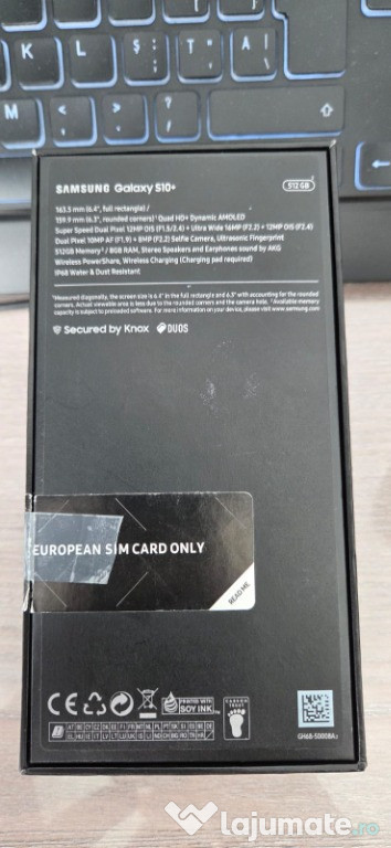 Telefonul arata bine. Prezintă mici zgarieturi insesizabile pe carcasa laterala. Ecranul este perfect. S-au schimbat in ultima luna de garantie: ecran, baterie, mufa casti, detin documente. Telefonul vine in cutia originala, incarcator + cablu date. Performanță 100%,Anuntul Galaxy S10 Plus Dual Sim, Ceramic Black, 512 GB este adaugat de pe LaJumate.ro.