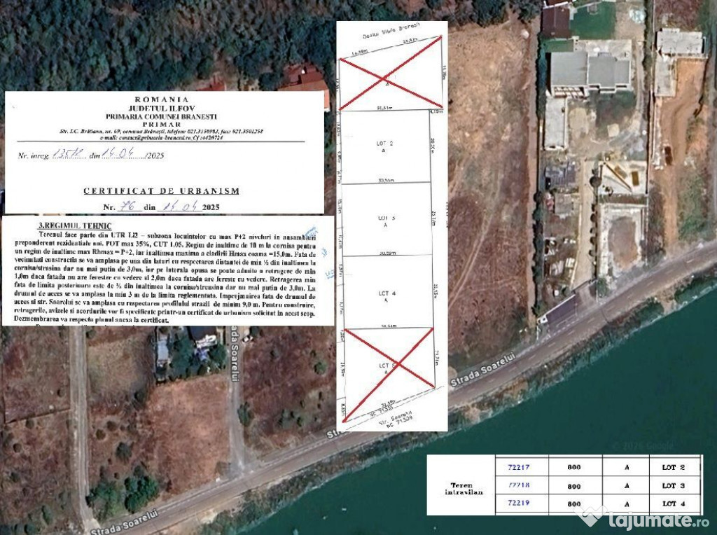 Sunt disponibile 3 loturi de teren, fiecare cu: