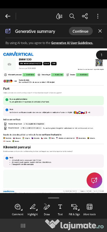 Vând BMW seria 5 30xd F10, important din reprezentanta Germania în ianuarie 2016 la 157000 de km, masina personala de 9 ani, s-au făcut aproximativ 10k km anual. Interior piele, bord în 2 culori, camera marsarier, distronic, citește semne de circulație, dvd active in mers. S-a schimbat distribuția, capacul culbutori, tampoane motor, discuri fata spate aproximativ 15k km, admisia, egr și răcitor egr schimbat recent pe rechemare, pompa de motorina de inalta a fost schimbata preventiv, o dețin și pe cea veche încă în stare buna, revizie cutie automata facuta.Anvelope puțin rulate cele de iarna 2 sezoane maxim 10k km, cele de vara doar un sezon. KM REALI nu comparati cu modele neintretinute și cu km dați înapoi, masina nu a fost implicata în accidente, jante de vara pe 18 iar cele de iarna pe 17.. Prețul este ușor negociabil la fata locului, contact ideal whatsapp am perioade cand nu sunt in tara, nu sunați cu oferte stupide.Anuntul Vând BMW seria 5 30xd este adaugat de pe LaJumate.ro.