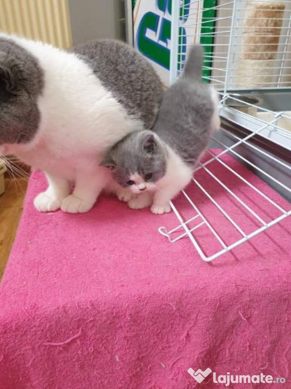 British Shorthair bicolor au virsta de sapte săptămâni deparazitați intern extern mănâncă bobite și hrana umedă de juniori crescuți în casa cu copiiAnuntul British Shorthair bicolor este adaugat de pe LaJumate.ro.
