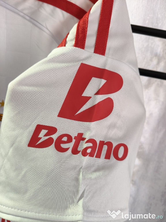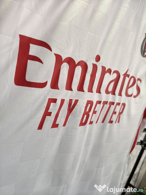 Tricou de deplasare (Away) al echipei Benfica Lisabona, design elegant alb cu accente roșii. Ideal pentru fanii clubului sau colecție.* Stare: Nou cu Etichetă (NWT).