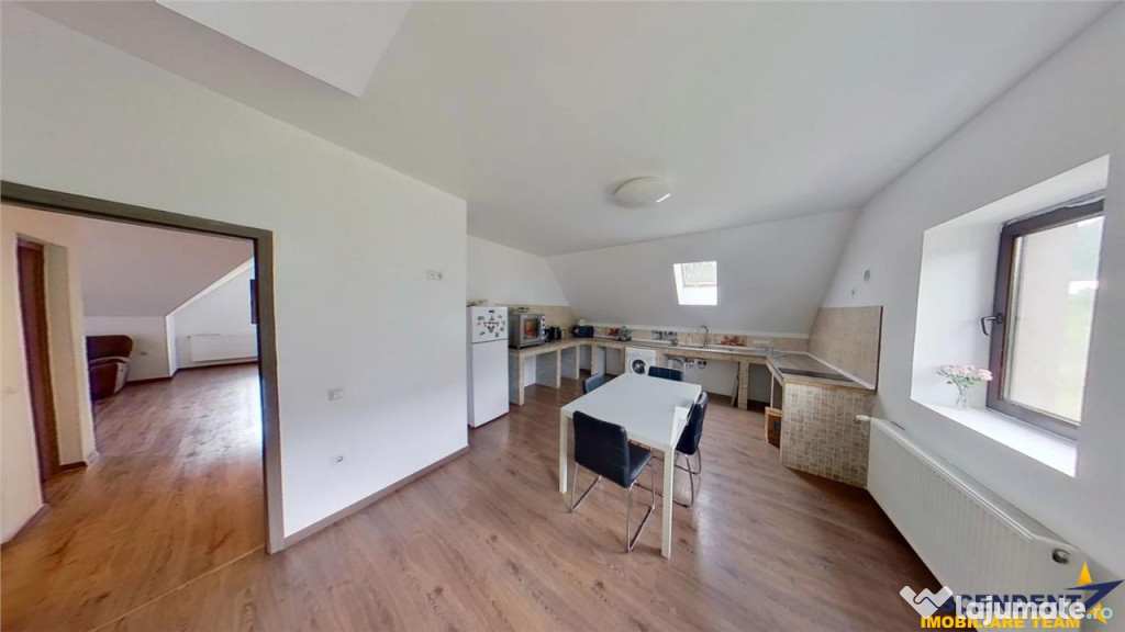 La mansarda regasim un apartament rezidential format din 3 camere, 2 bai, bucatarie, dressing, birou, hol si camara.