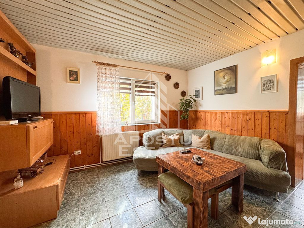 APOSTU ESTATE va ofera spre vanzare o casa individuala, aflata la o distanta de 30 de minute cu masina, fata de Timisoara.In curte exista 2 constructii, acestea sunt desfasurate dupa cum urmeaza: