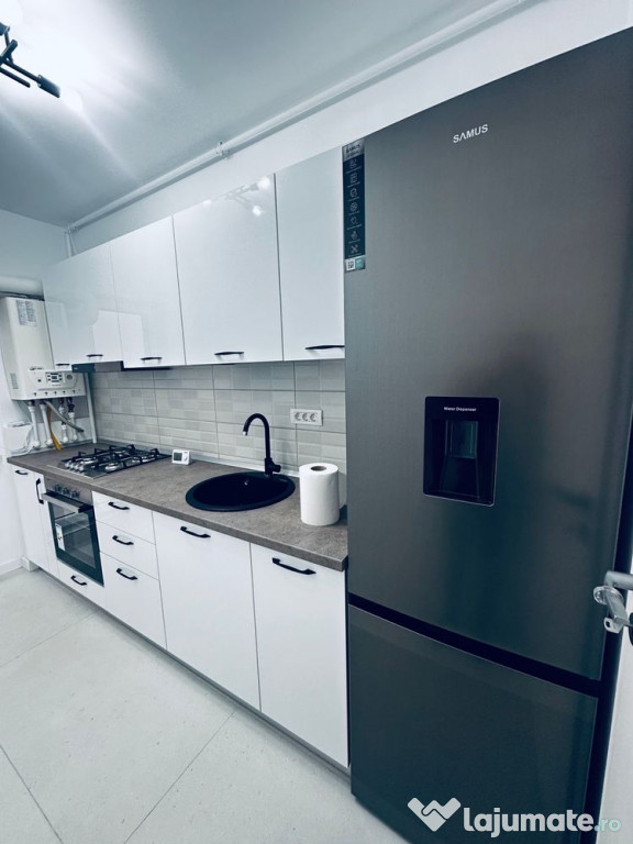 • Complet mobilată și utilată (mobilier nou, electrocasnice noi – frigider, plită, cuptor, hotă, mașină de spălat)