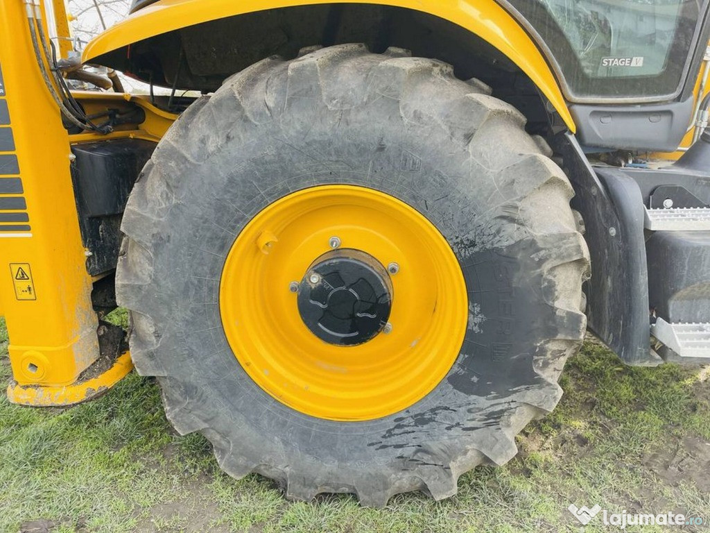 Buldoexcavator, Powershift 40 km/h, tracțiune integrală, 3 cupe, furci pentru paleți, aer condiționat