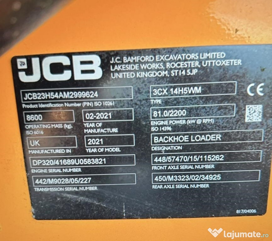 Anuntul Buldoescavator JCB 3CX Sitemaster ECO Transport/Testare Incluse este adaugat de pe LaJumate.ro.