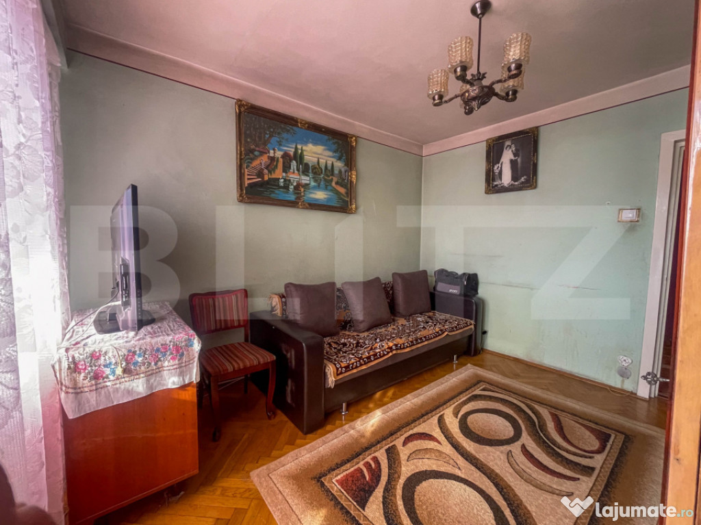 Un apartament cu potențial excelent, amplasat într-o zonă centrală, perfect pentru a fi amenajat după propriul gust și transformat într-un cămin modern sau într-o investiție sigură.