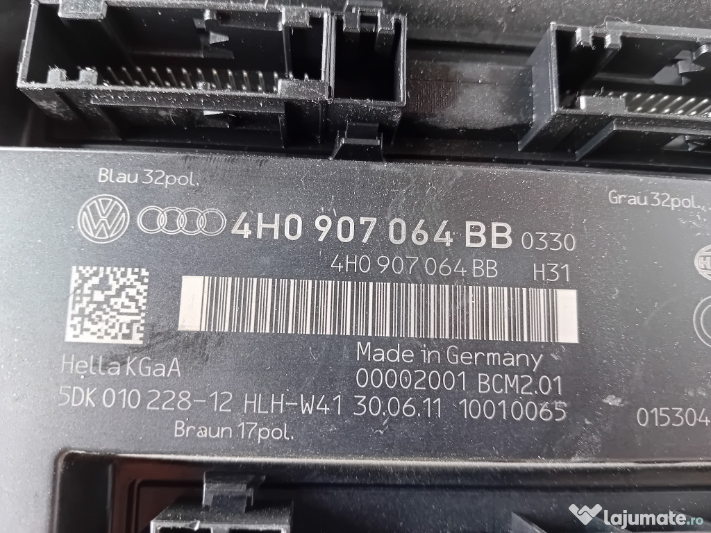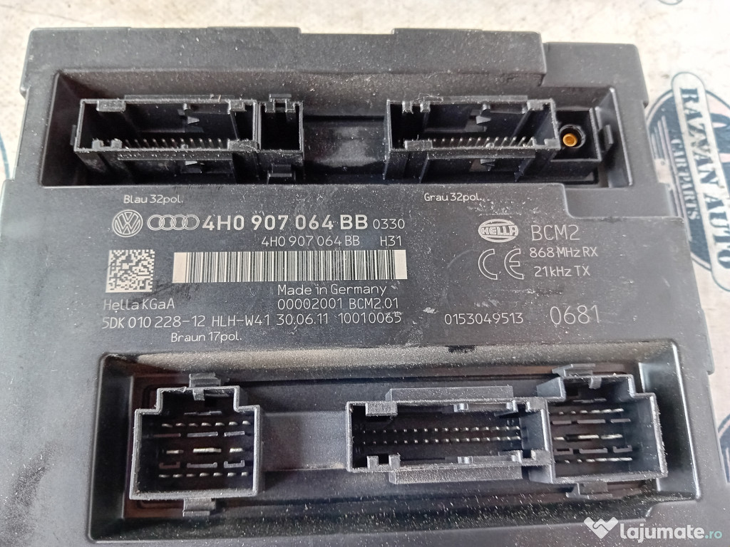 Calculator confort Audi A8 2012. Cod(uri): 4H0907064BB. Piesele comercializate sunt originale, provenite din dezmembrari. Dispunem de o gama larga de piese multimarca. Piesele sunt verificate inainte de a fi puse spre vanzare. In caz de neconformitate piesa se poate returna. Va rugam sa verificati disponibilitatea pieselor telefonic. Trimitem in tara prin curier.Marcă: Audi