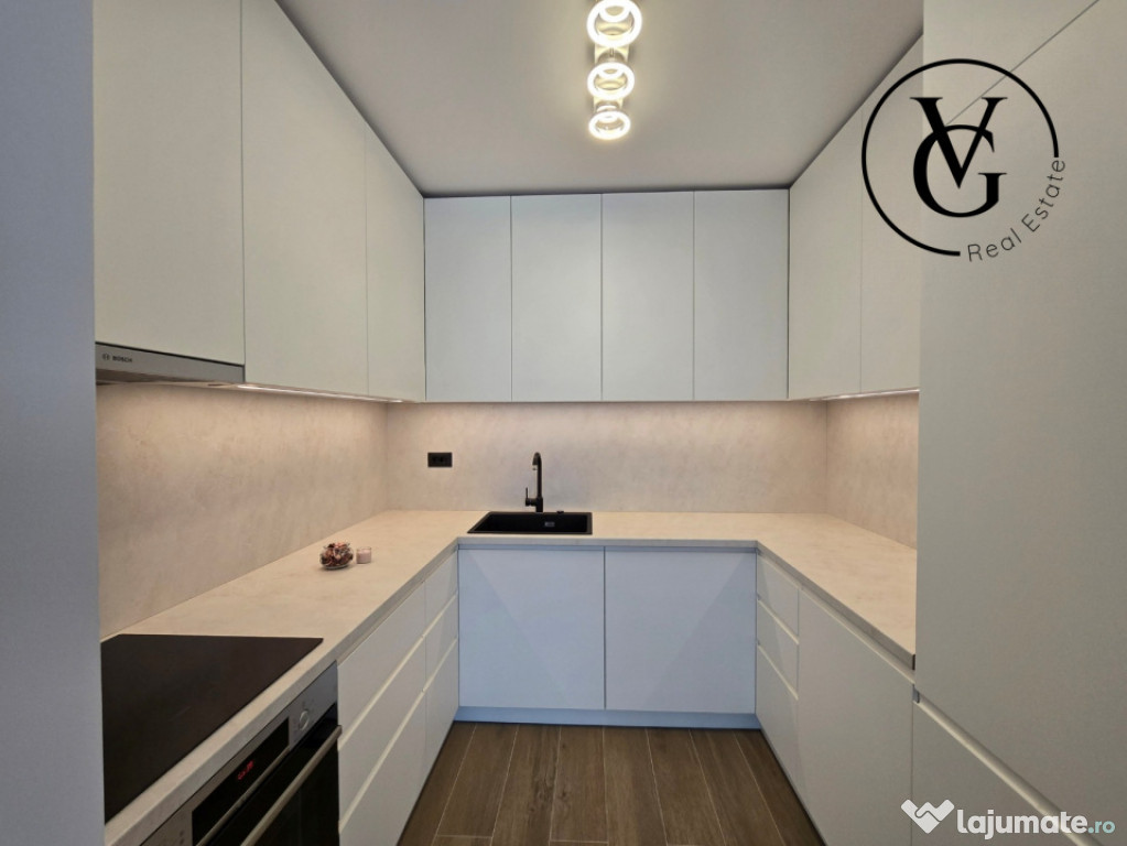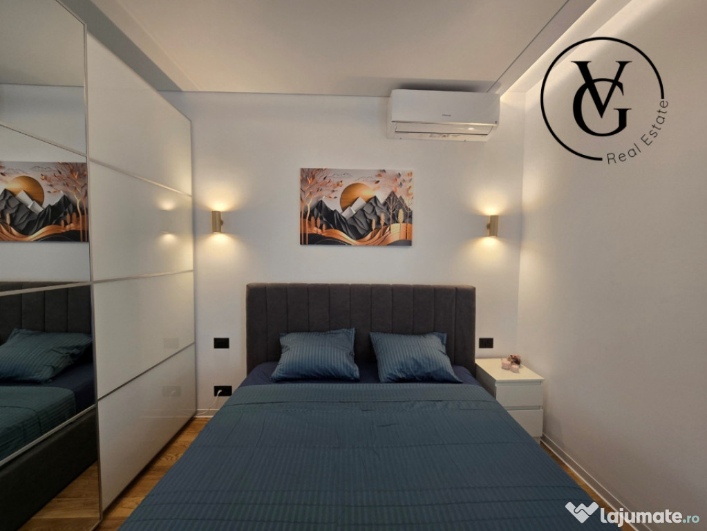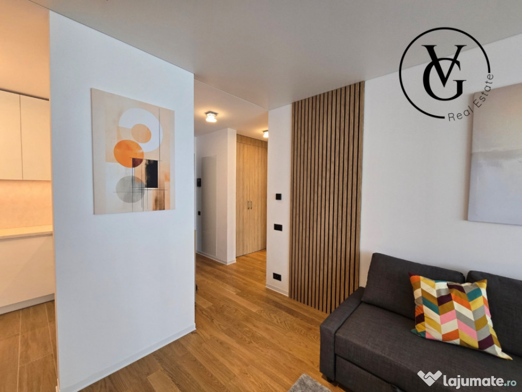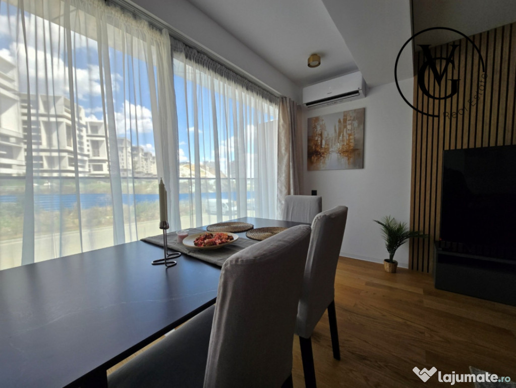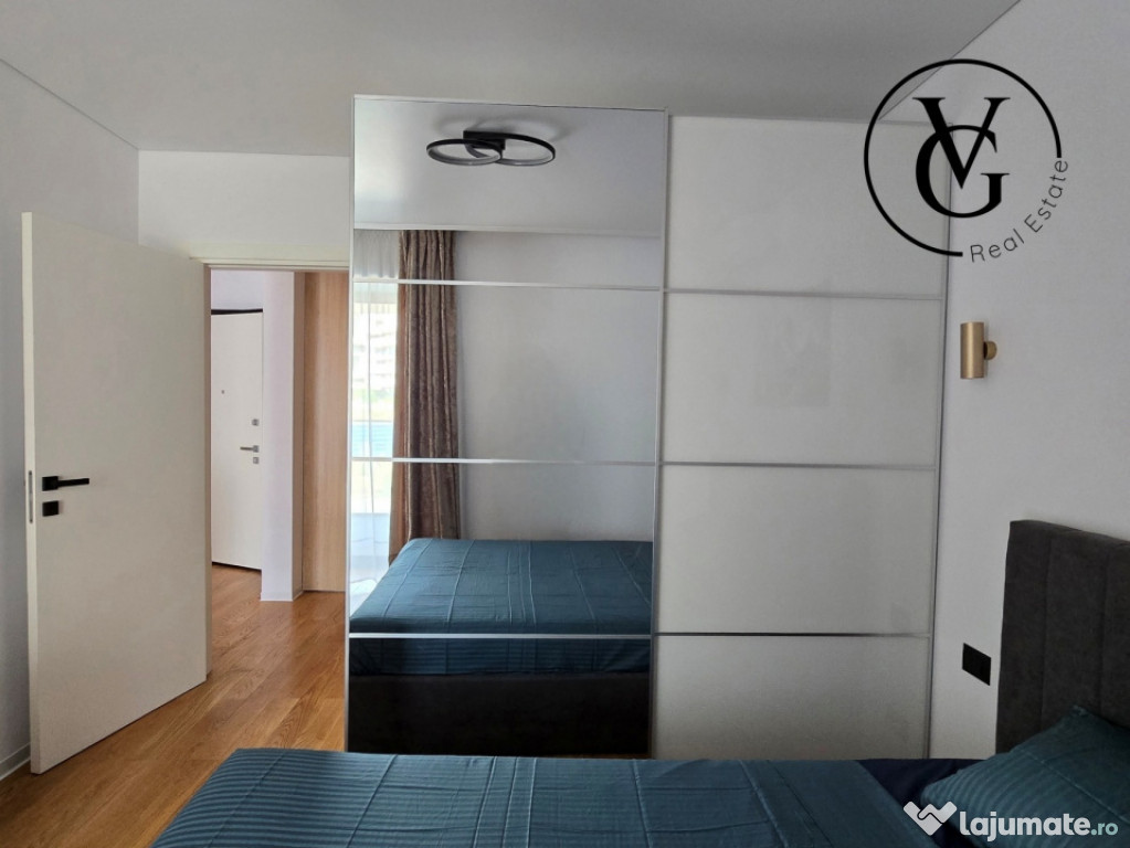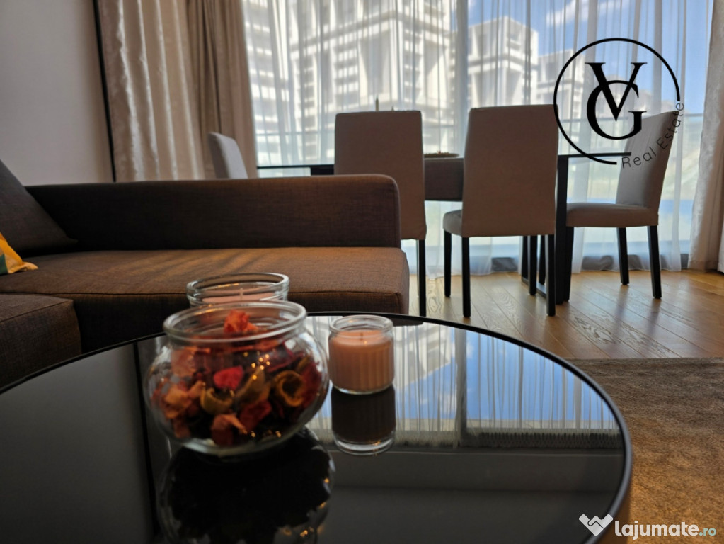 VG Real Estate vă propune spre închiriere un apartament modern si elegant cu 2 camere, situat în zona Barbu Văcărescu / Fabrica de Glucoză — una dintre cele mai dorite zone rezidențiale din București.Apartamentul se afla in prestigiosul complex rezidențial YachtKid. Complexul se remarcă prin design modern, finisaje premium și facilități de top: piscină, parcare subterană cu stații pentru mașini electrice, zone verzi amenajate, securitate 24/7 și servicii de concierge.