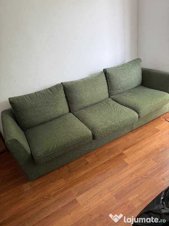 Vând canapea spațioasă cu 3 locuri, în stare foarte bună.Culoare: verde măsliniu ușor de asortat în orice decor modern sau clasic.