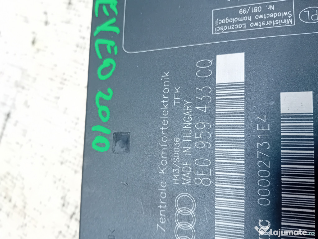 Calculator confort Seat Exeo 2010. Cod(uri): 8E0959433CQ. Piesele comercializate sunt originale, provenite din dezmembrari. Dispunem de o gama larga de piese multimarca. Piesele sunt verificate inainte de a fi puse spre vanzare. In caz de neconformitate piesa se poate returna. Va rugam sa verificati disponibilitatea pieselor telefonic. Trimitem in tara prin curier.Marcă: Seat