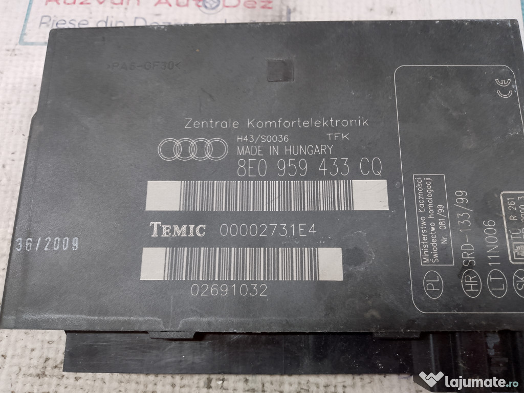 Calculator confort Seat Exeo 2011. Cod(uri): 8E0959433CQ. Piesele comercializate sunt originale, provenite din dezmembrari. Dispunem de o gama larga de piese multimarca. Piesele sunt verificate inainte de a fi puse spre vanzare. In caz de neconformitate piesa se poate returna. Va rugam sa verificati disponibilitatea pieselor telefonic. Trimitem in tara prin curier.Marcă: Seat