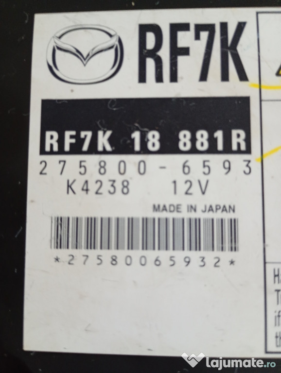 de vânzare calculator de bord Mazda6 cod RF7K 18 881R. 275800-6593 K4238. Motor 2.0 diesel 143CP.Anuntul Calculator de bord Mazda6 este adaugat de pe LaJumate.ro.