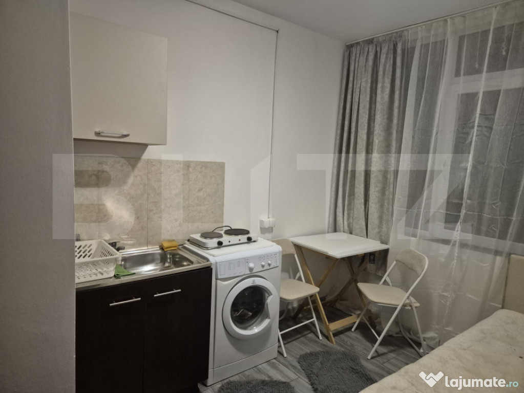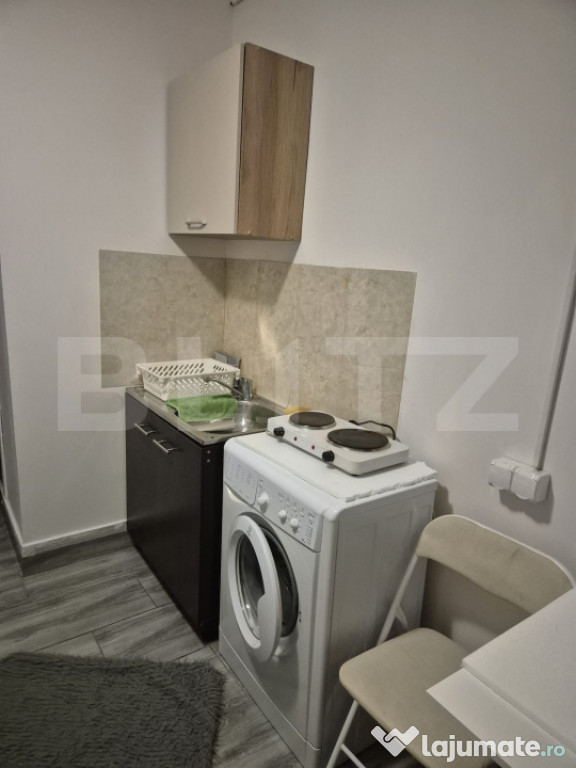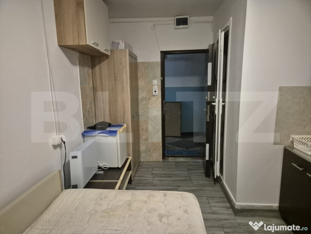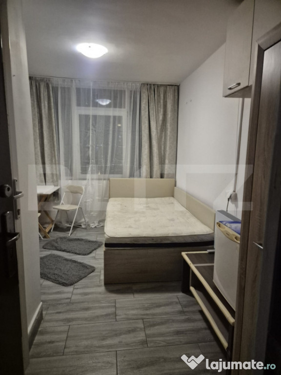 Blitz ofera spre nchiriere o cameră de cămin modernă, ideală pentru o persoană care își dorește confort, liniște și acces facil la toate punctele de interes din zonă. Camera este dotată cu baie proprie și o chicinetă elegantă, perfectă pentru pregătirea meselor rapide. Este complet utilată cu TV, mașină de spălat rufe, frigider și plită electrică. Spațiul este bine întreținut și potrivit pentru cineva care își dorește o locuință curată și practică.Zona este excelentă, având în apropiere stații de transport în comun, magazine, grădinițe, școli și centrul comercial AFI Mall, ceea ce face deplasările și cumpărăturile foarte ușor de realizat. Întreținerea este foarte mică, iar încălzirea se face pe curent; chiar și în cea mai rece iarnă factura se situează în jurul sumei de 100 lei, ceea ce reprezintă un avantaj important.