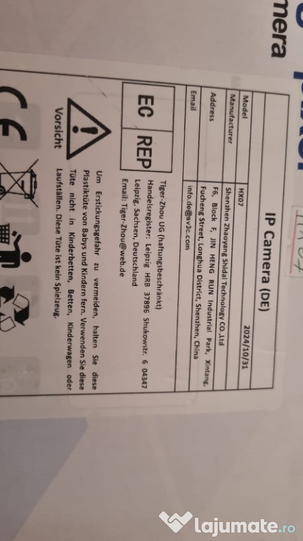 Camera de supraveghere cu conectivitate wirelles pentru o monitorizare eficientă a locuinței sau a afacerii tale. Este noua, are card memorie care inregistreaza 11 zile, are mod noapte, am aplicatia si de acolo se poate regla zoom, miscarea , etc. An fabricatie octombrie 2024 . Carcasa metalica .Anuntul Camera de supraveghere este adaugat de pe LaJumate.ro.