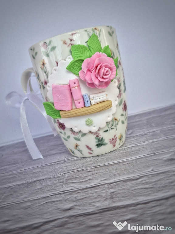 Căni , Set cafea, Semn de carte /caiet notițe ,vaze.Toate decorate handmade din lut polimeric