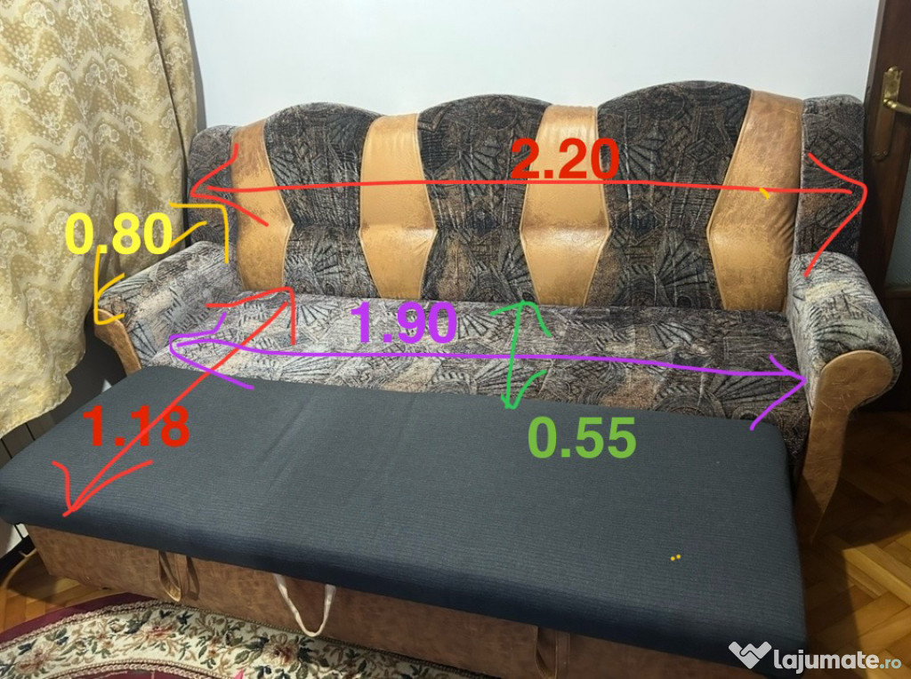 Canapea extensibilă stare bună Dimensiune: - 2.20 cm/0.80 cm - șezut 1.90 cm/0.55 cm - extins ...