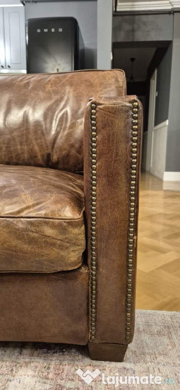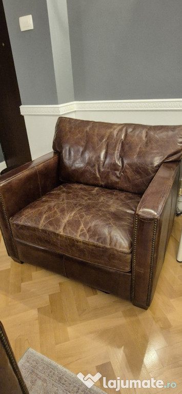 Set canapea piele naturala vaca + 1 x fotoliuDimensiune canapea: L 2200 mm x 630 H x A 970 mm