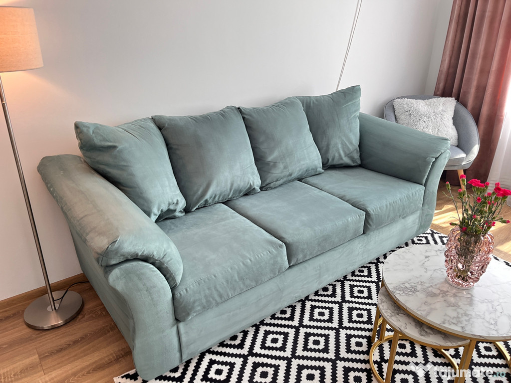 Canapea Ikea extensibila 225 cm lungime, sezut 173 cm, adancime 105 cm. Bonus, încă o tapițerie de re ...